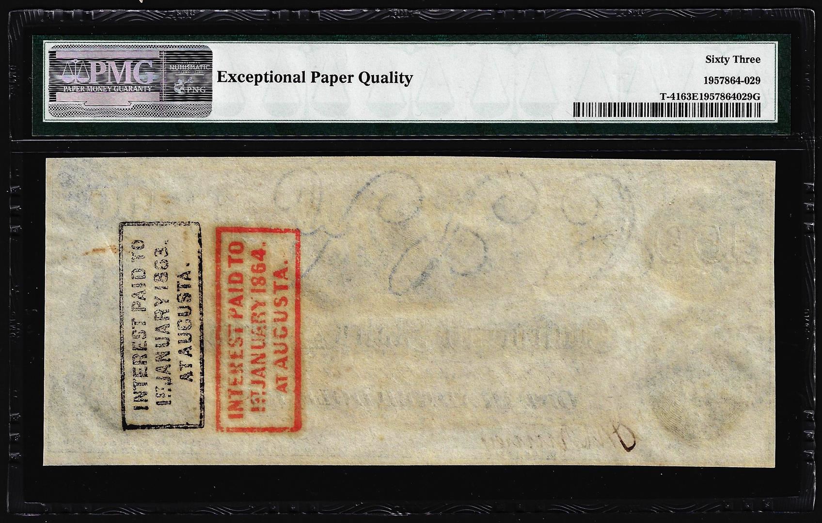 1862 $100 Confederate States of America Note T-41 PMG Choice Uncirculated 63EPQ
