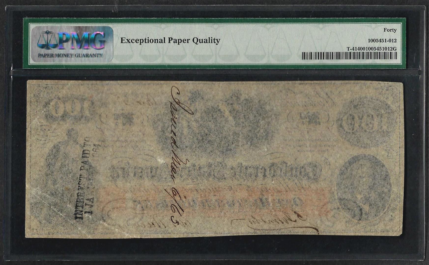 1862 $100 Confederate States of America Note T-41 PMG Extremely Fine 40EPQ