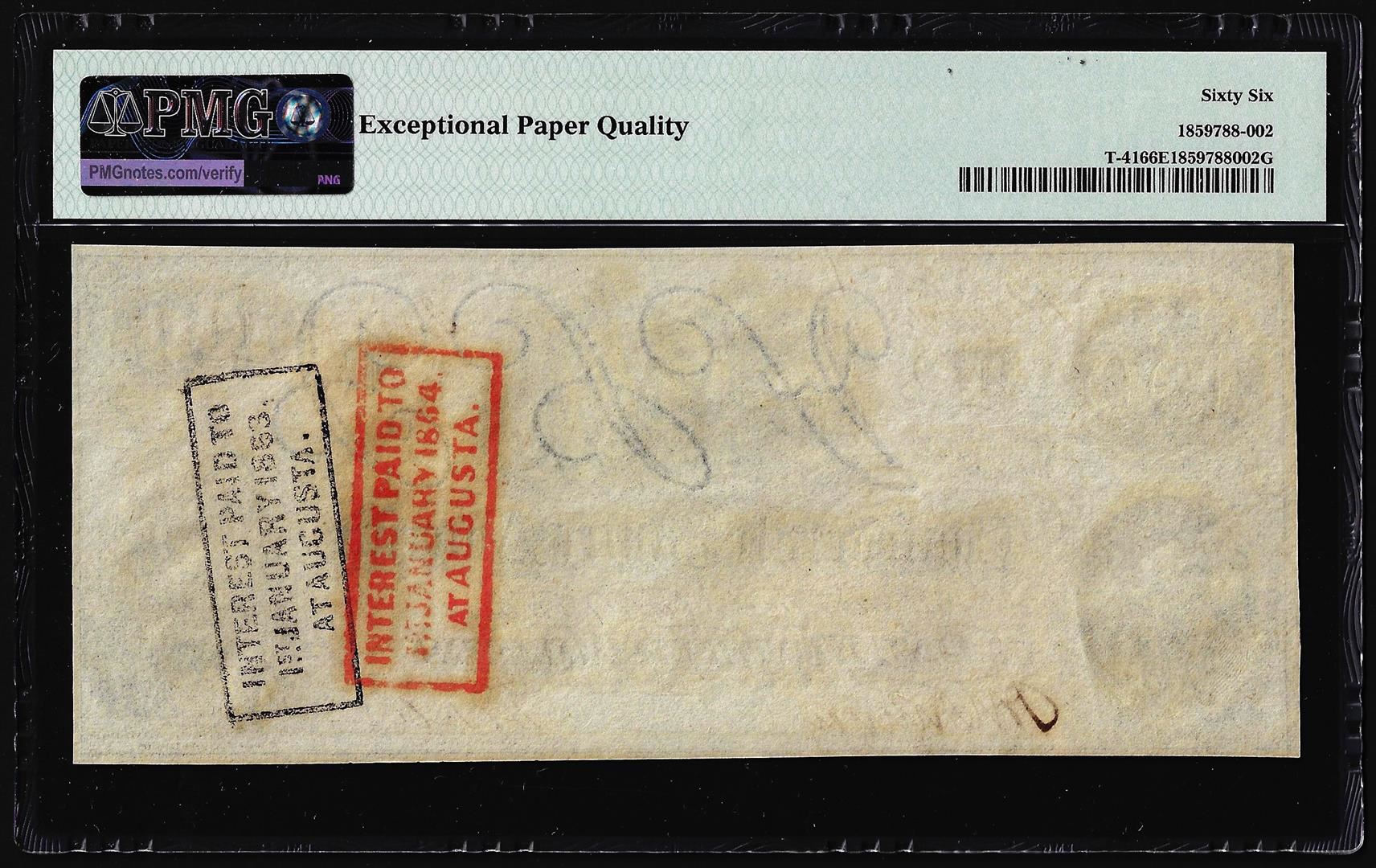 One 1862 $100 Confederate States of America Note T-41 PMG Gem Uncirculated 66EPQ. PMG Certified.