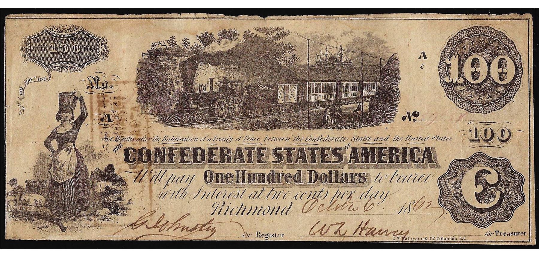 One 1862 $100 Confederate States of America Note.