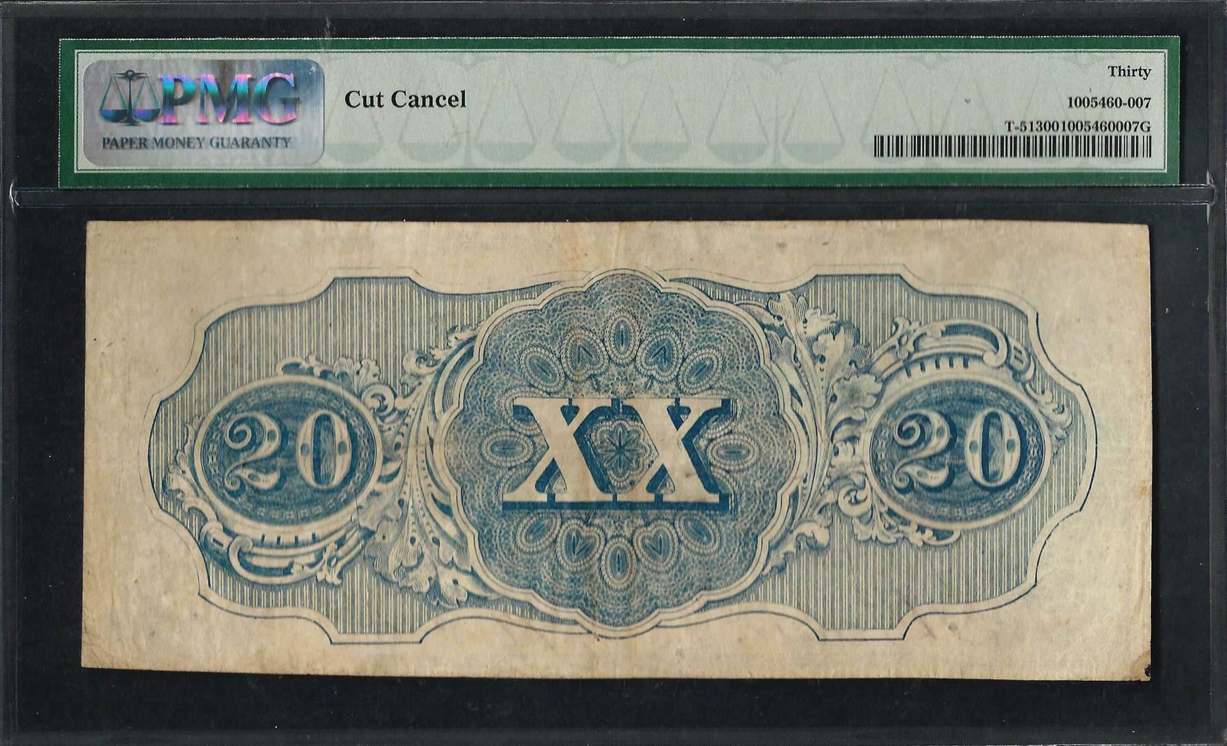 1862 $20 Confederate States of America Note T-51 PMG Very Fine 30 Canceled
