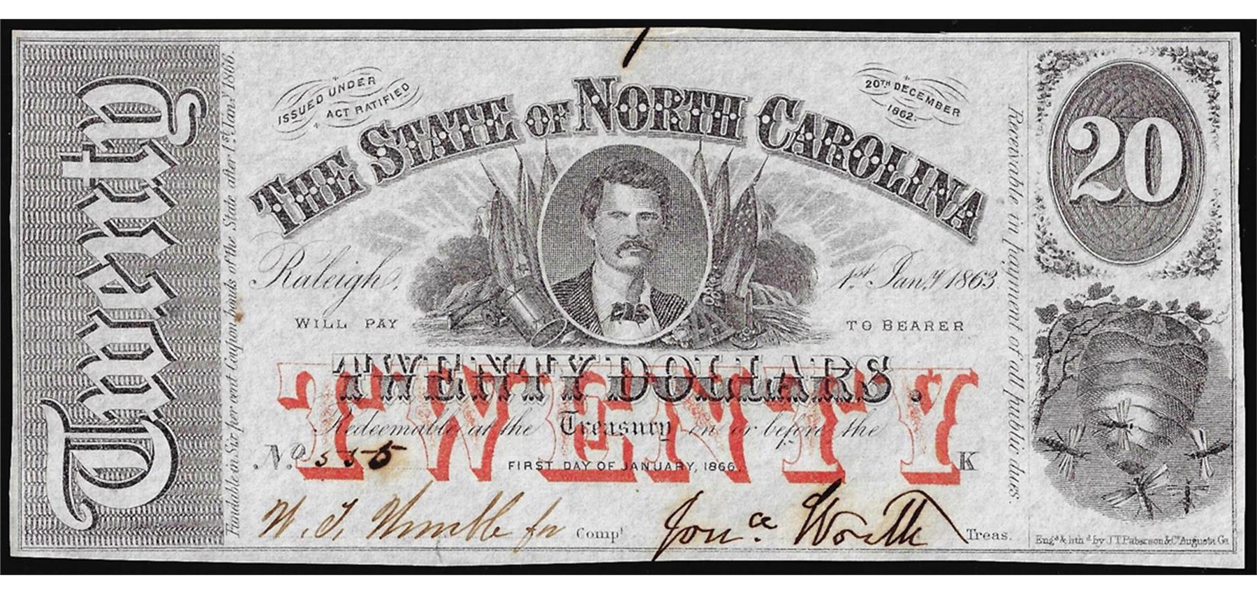 One 1862 $20 The State of North Carolina Obsolete Note.