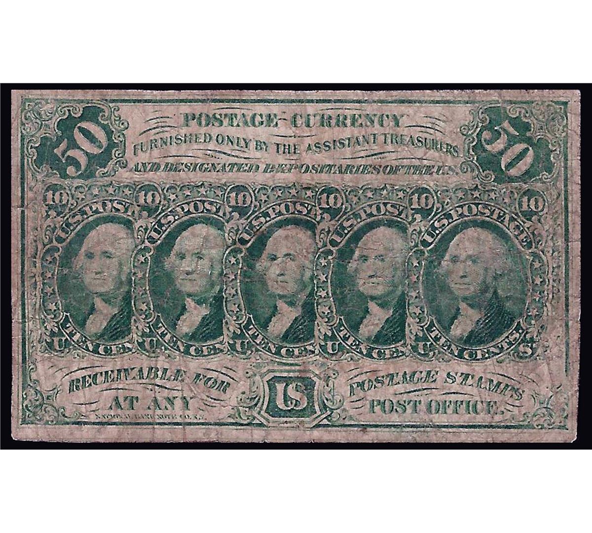 One 1862 50 Cent 1st Issue Fractional Note.