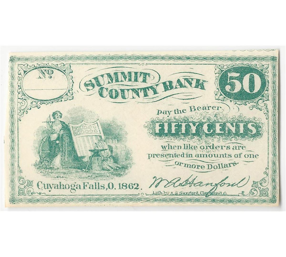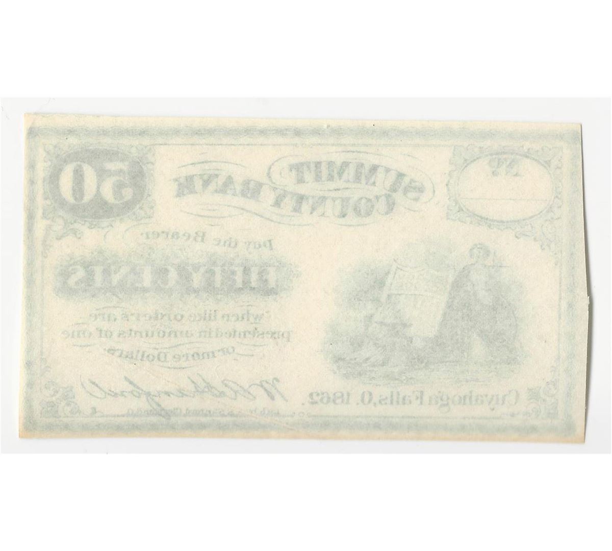 One 1862 50 Cents Summit County Bank Fractional Obsolete.