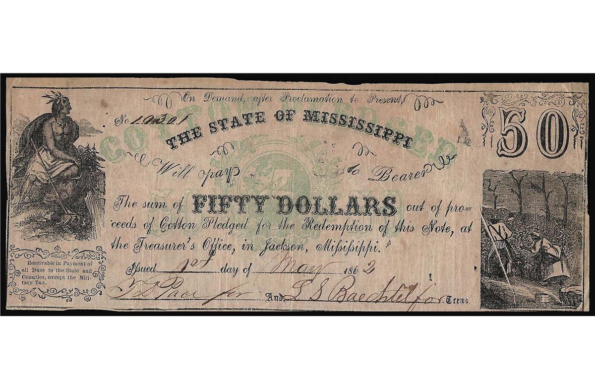 One 1862 $50 The State of Mississippi Obsolete Note.