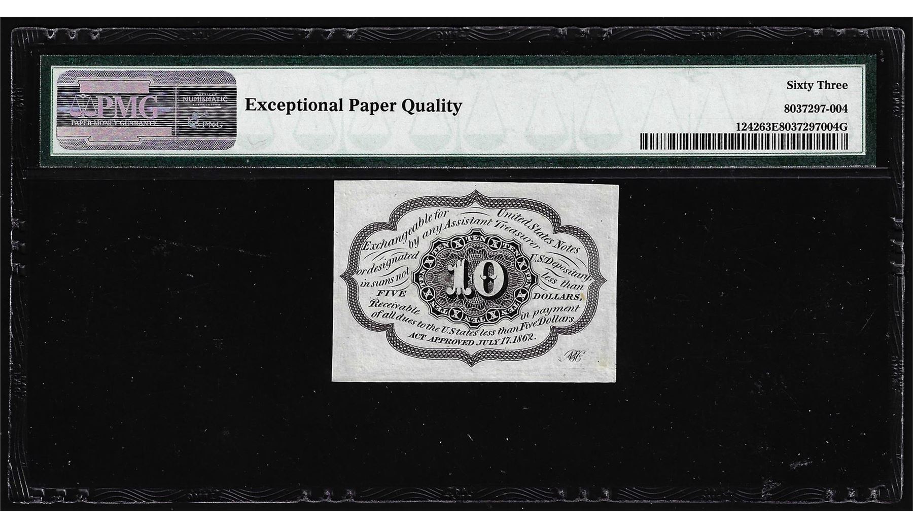 1862 First Issue Ten Cent Fractional Currency Note Fr.1242 PMG Ch. Uncirculated 63EPQ