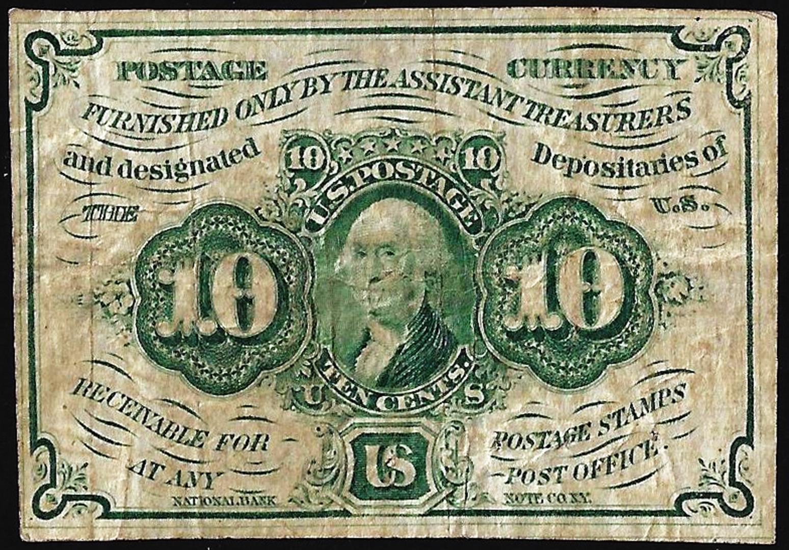 One 1862 First Issue Ten Cents Fractional Currency Note.