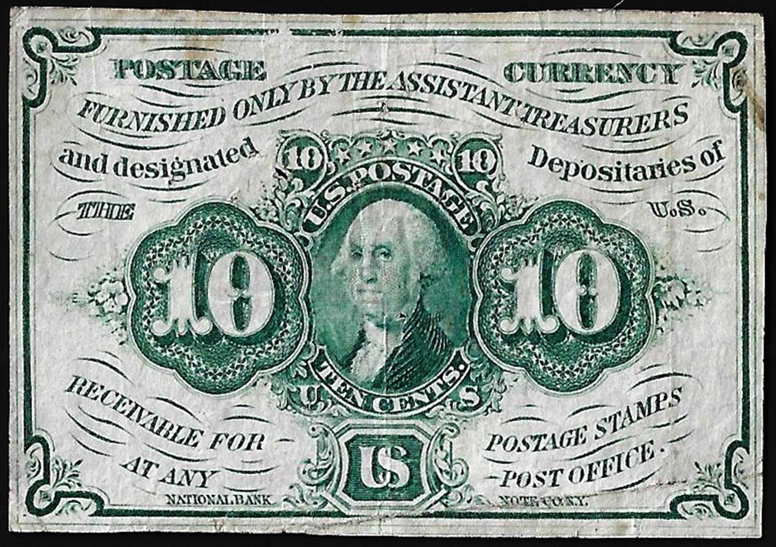 One 1862 First Issue Ten Cents Fractional Currency Note.