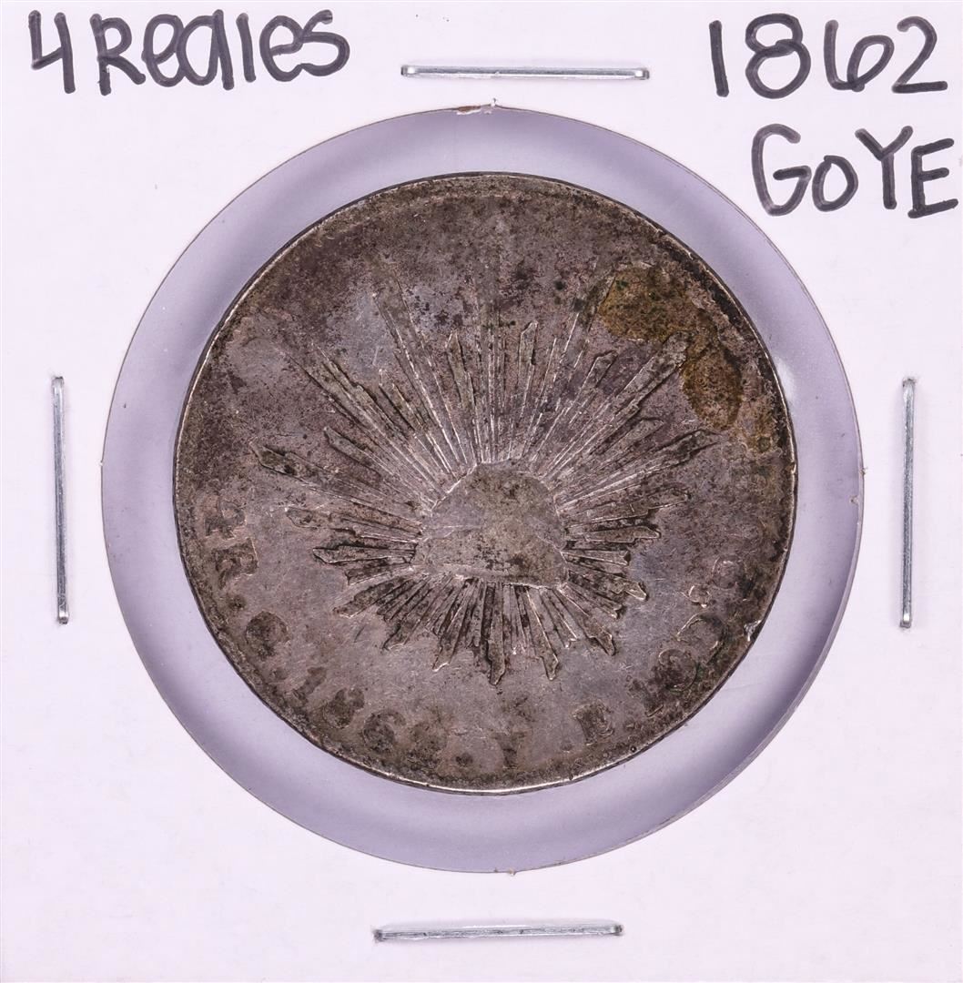One 1862 GoYE Mexico 4 Reales Silver Coin.