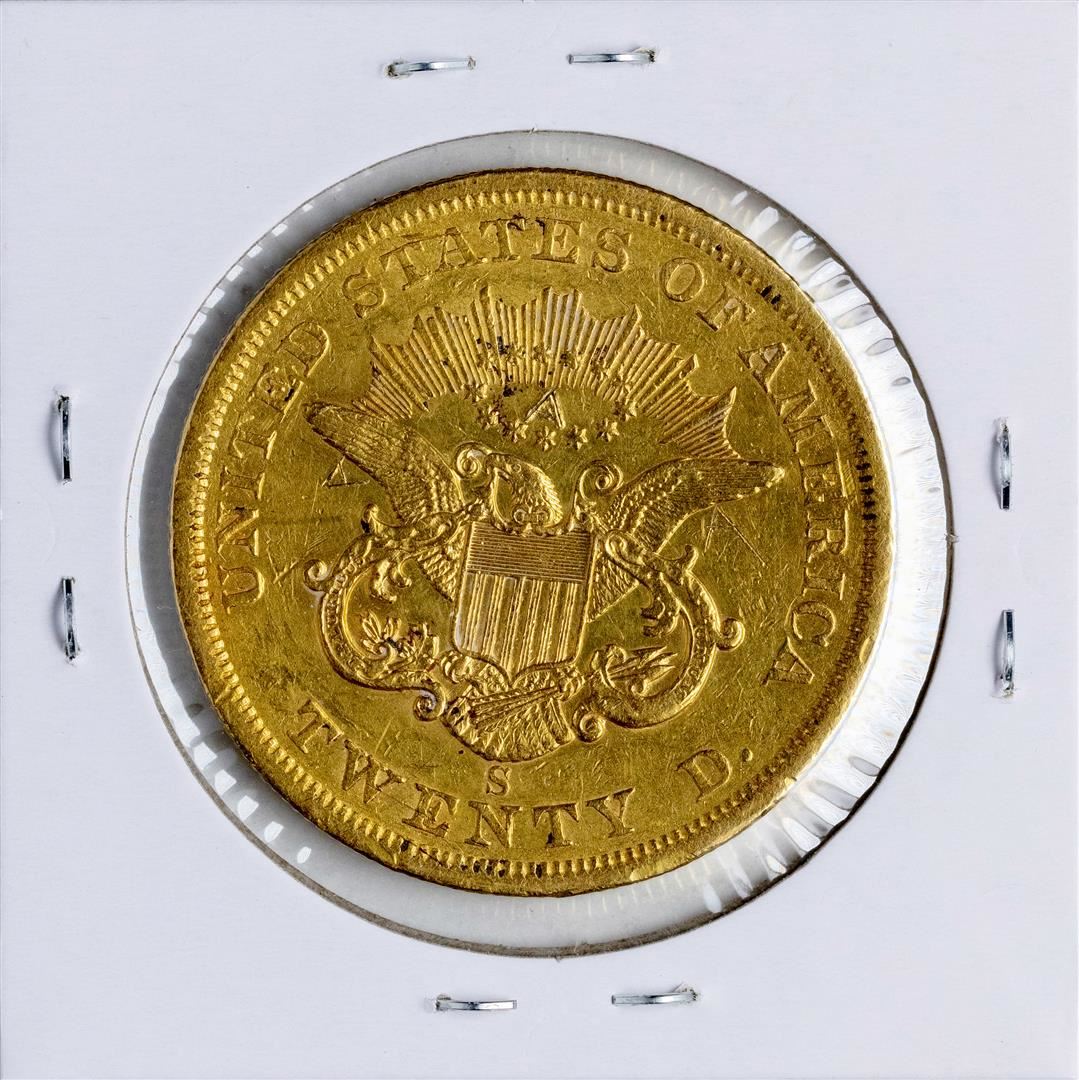 One 1862-S $20 Liberty Head Double Eagle Gold Coin.
