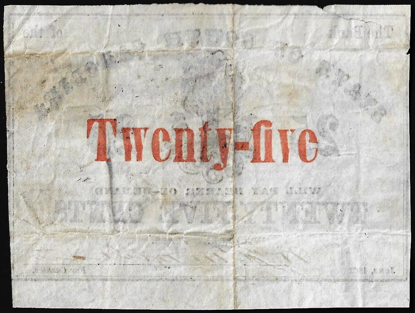 1862 Twenty-Five Cents The Bank of the State of South Carolina Obsolete Note