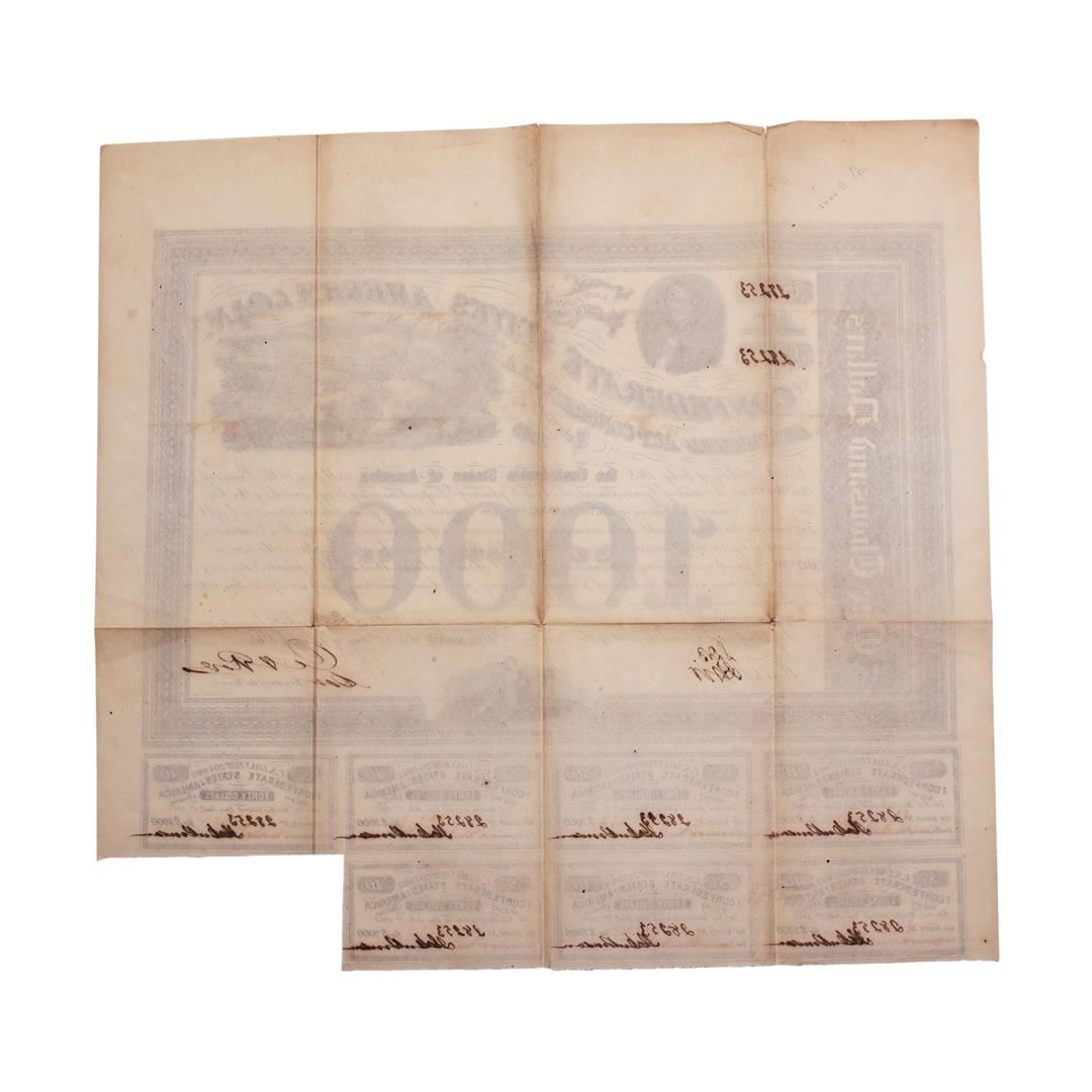 One 1863 $1,000 Confederate Bond Obsolete Sheet B-134.