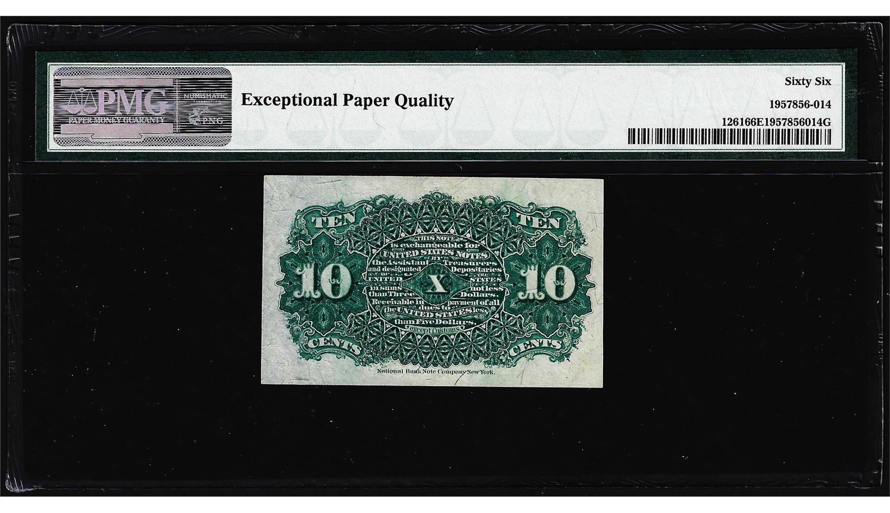 One 1863 10 Cent 4th Issue Fractional Currency Note Fr.1261 PMG Choice Uncirculated 66EPQ. PMG Certified.