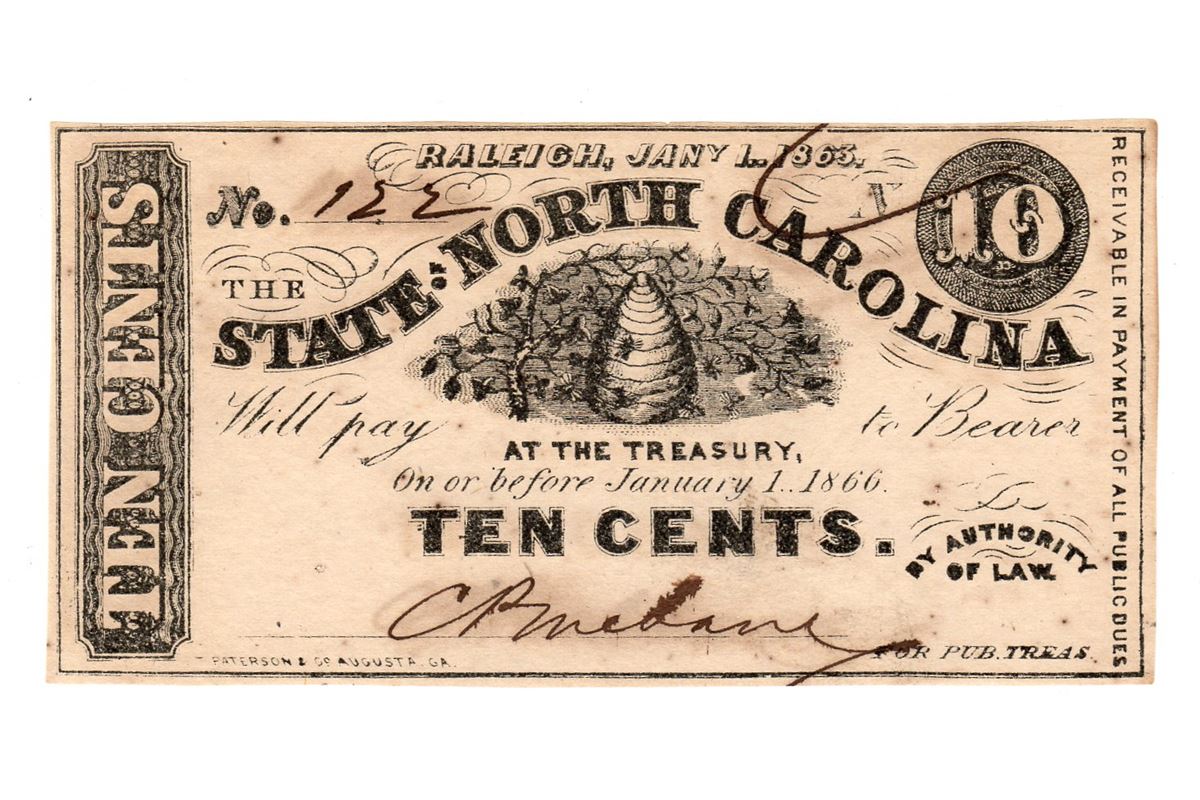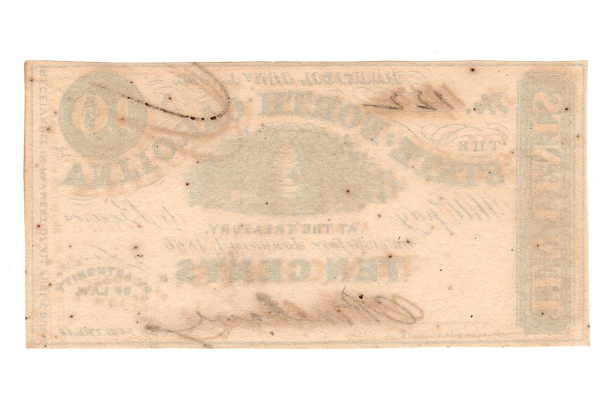 One 1863 10 Cents The State of North Carolina Fractional Note.
