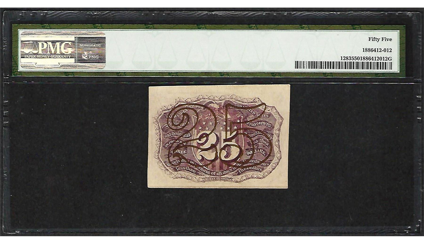One 1863 25 Cents Second Issue Fractional Currency Note Fr.1283 PMG About Uncirculated 55. PMG Certified.