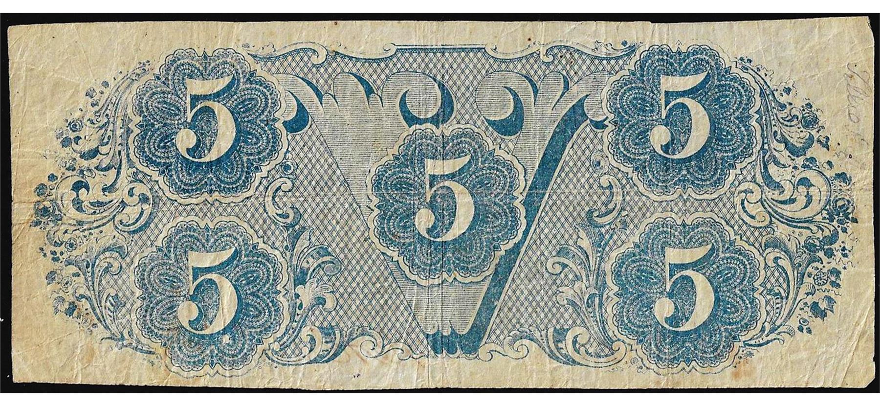 One 1863 $5 Confederate States of America Note.