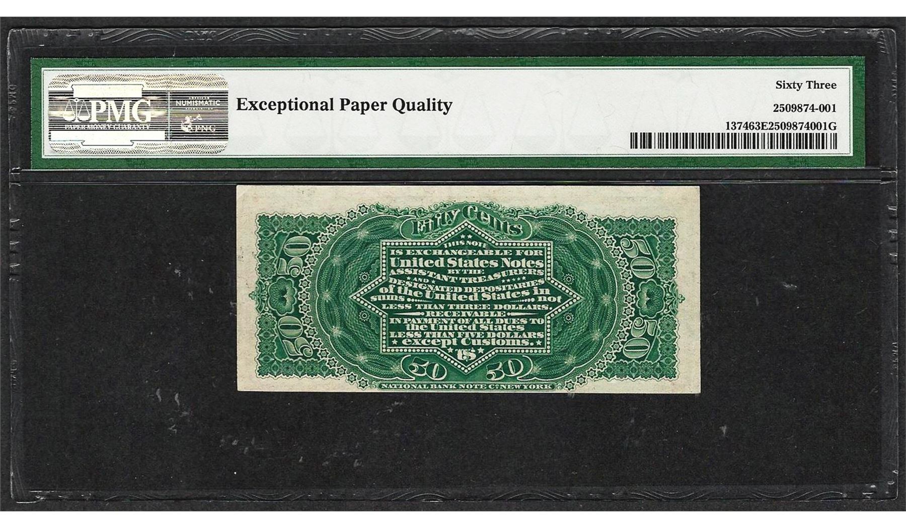 One 1863 50 Cent Fourth Issue Lincoln Fractional Currency Note PMG Choice Unc. 63EPQ. PMG Certified.