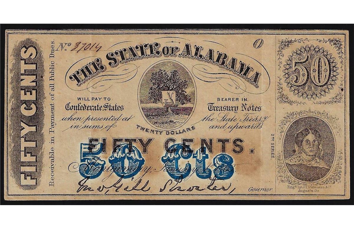 One 1863 50 Cent The State of Alabama Obsolete Note.