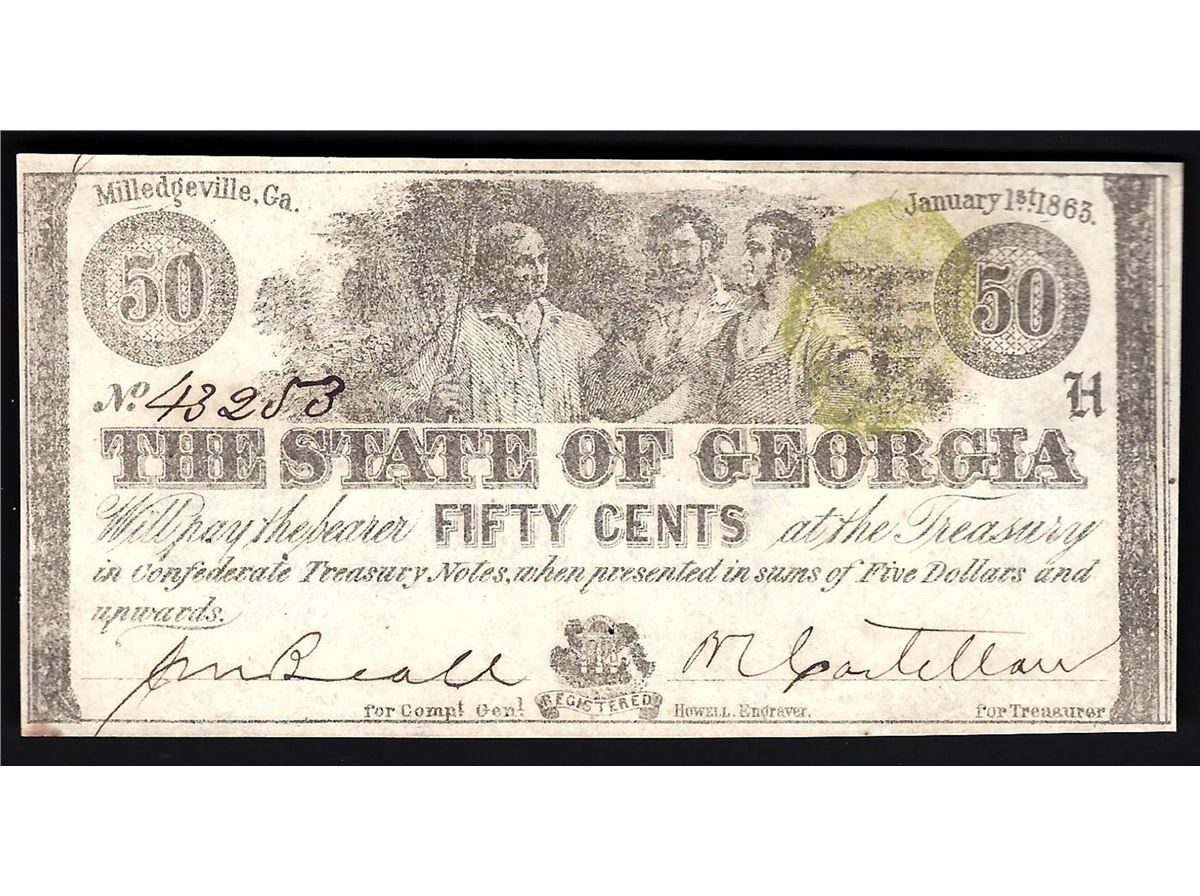 One 1863 50 Cents The State of Georgia Confederate Note.