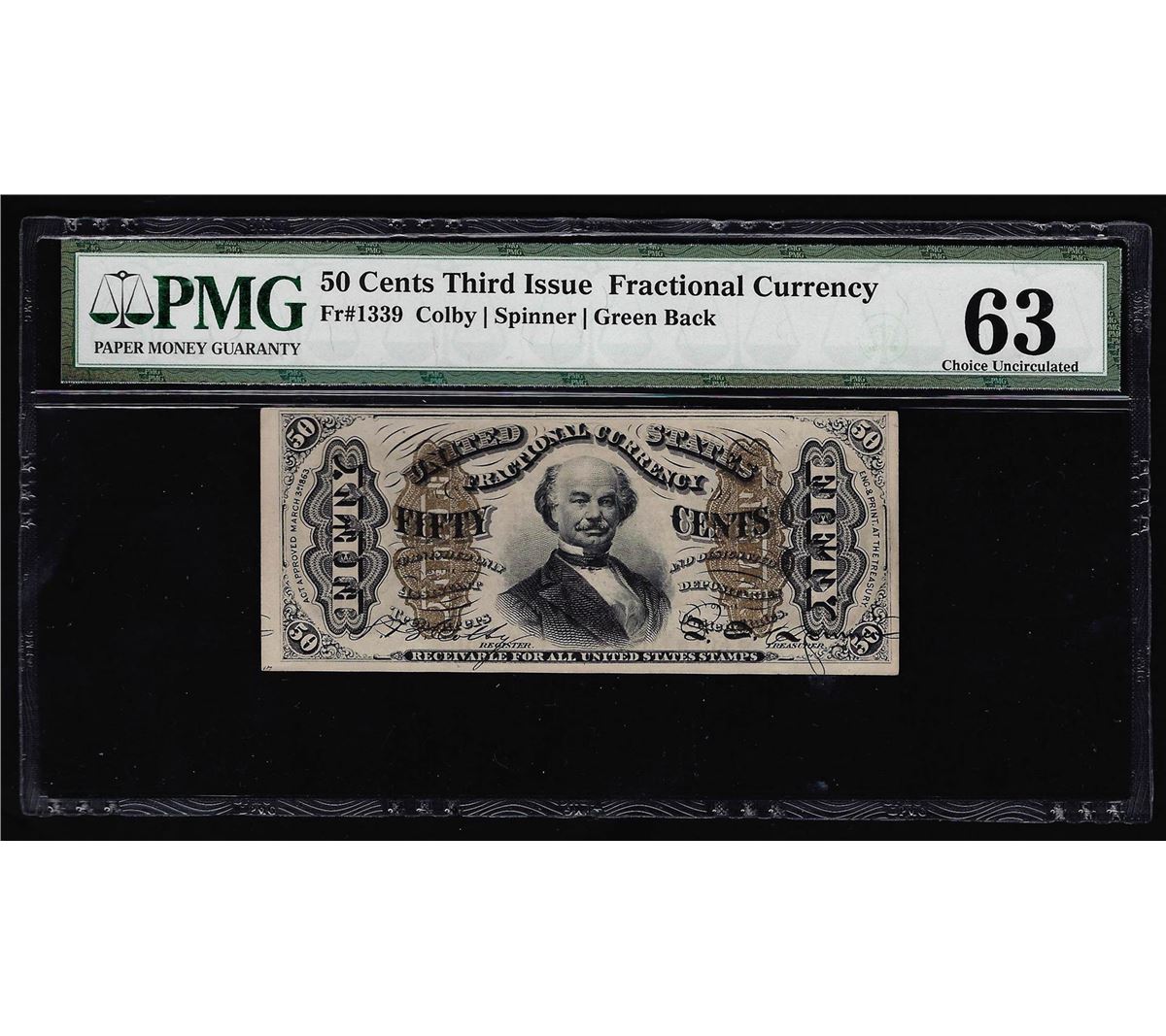 One 1863 50 Cents Third Issue Fractional Currency Note PMG CU63. PMG Certified.