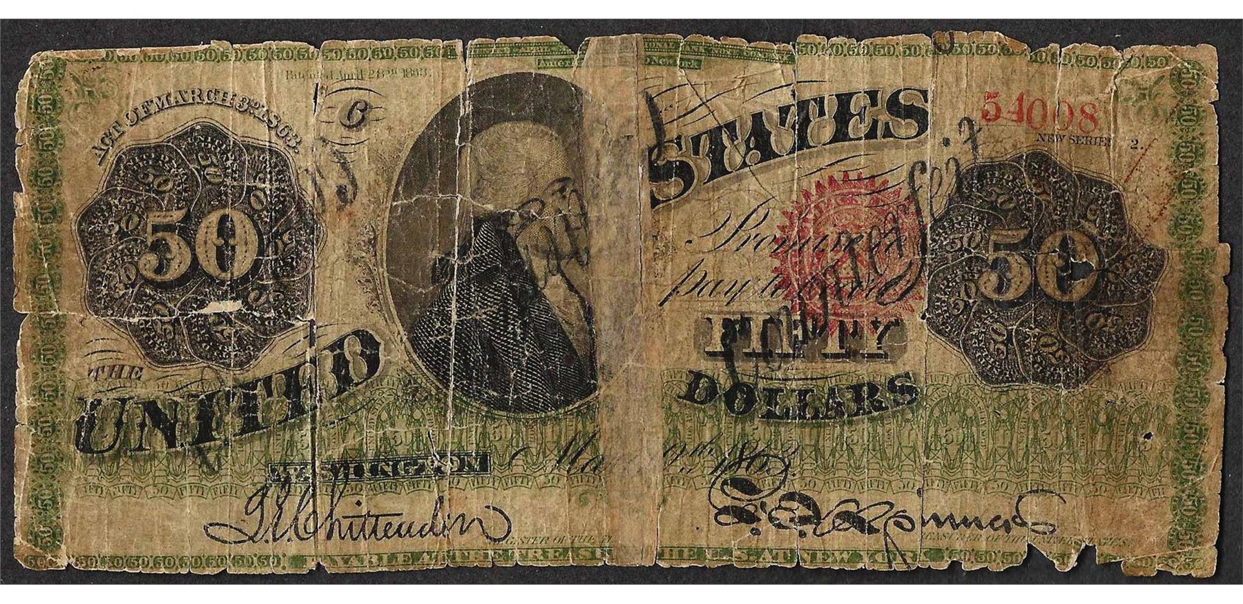 One 1863 $50 Legal Tender Contemporary Counterfeit Note.
