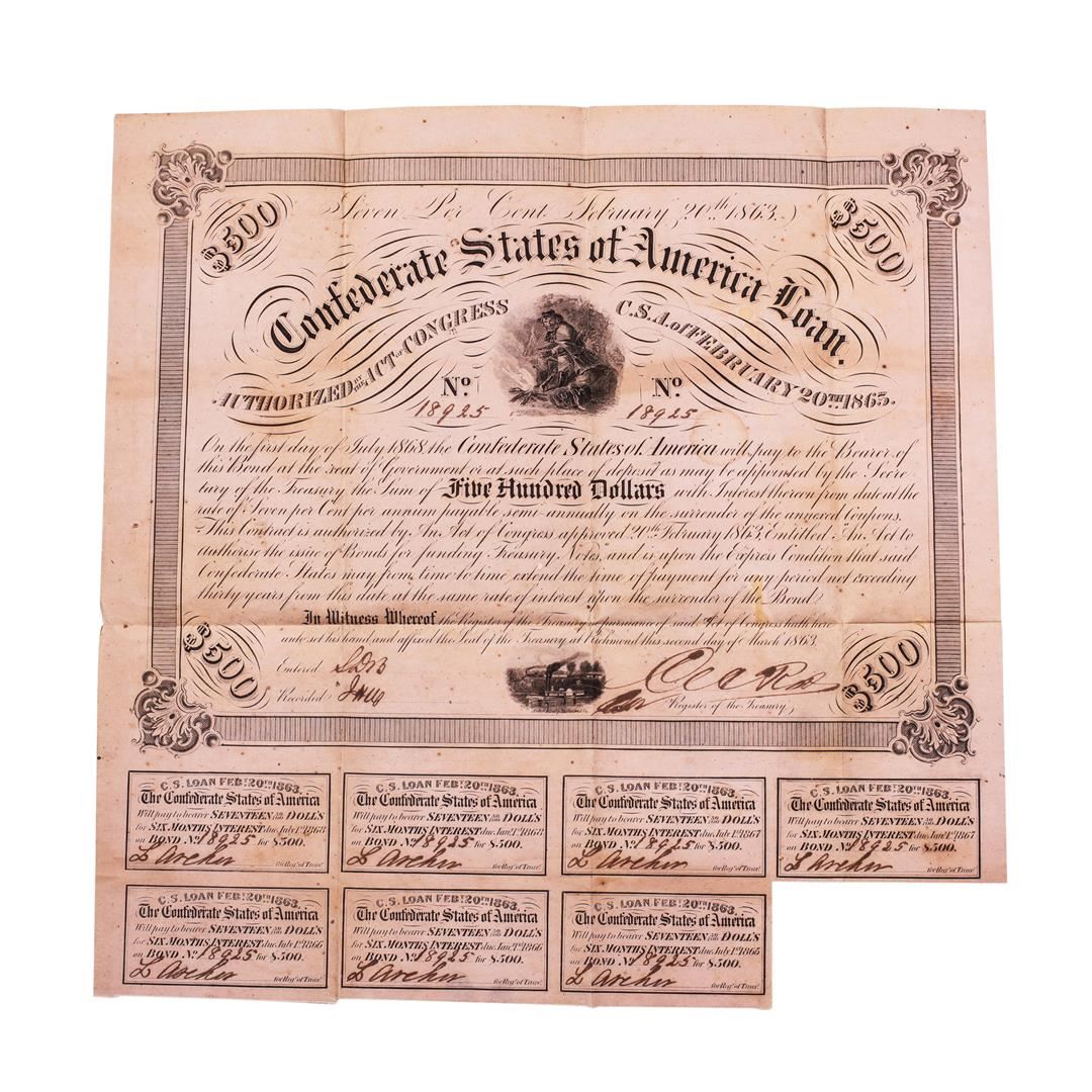 One 1863 $500 Confederate Bond Obsolete Sheet Printed on Pink Paper B-221.