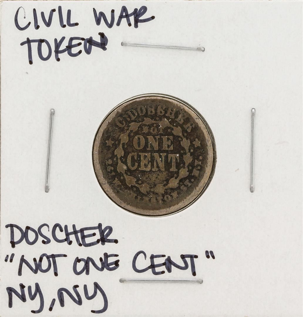 One 1863 Civil War Token Doscher Not One Cent New York.