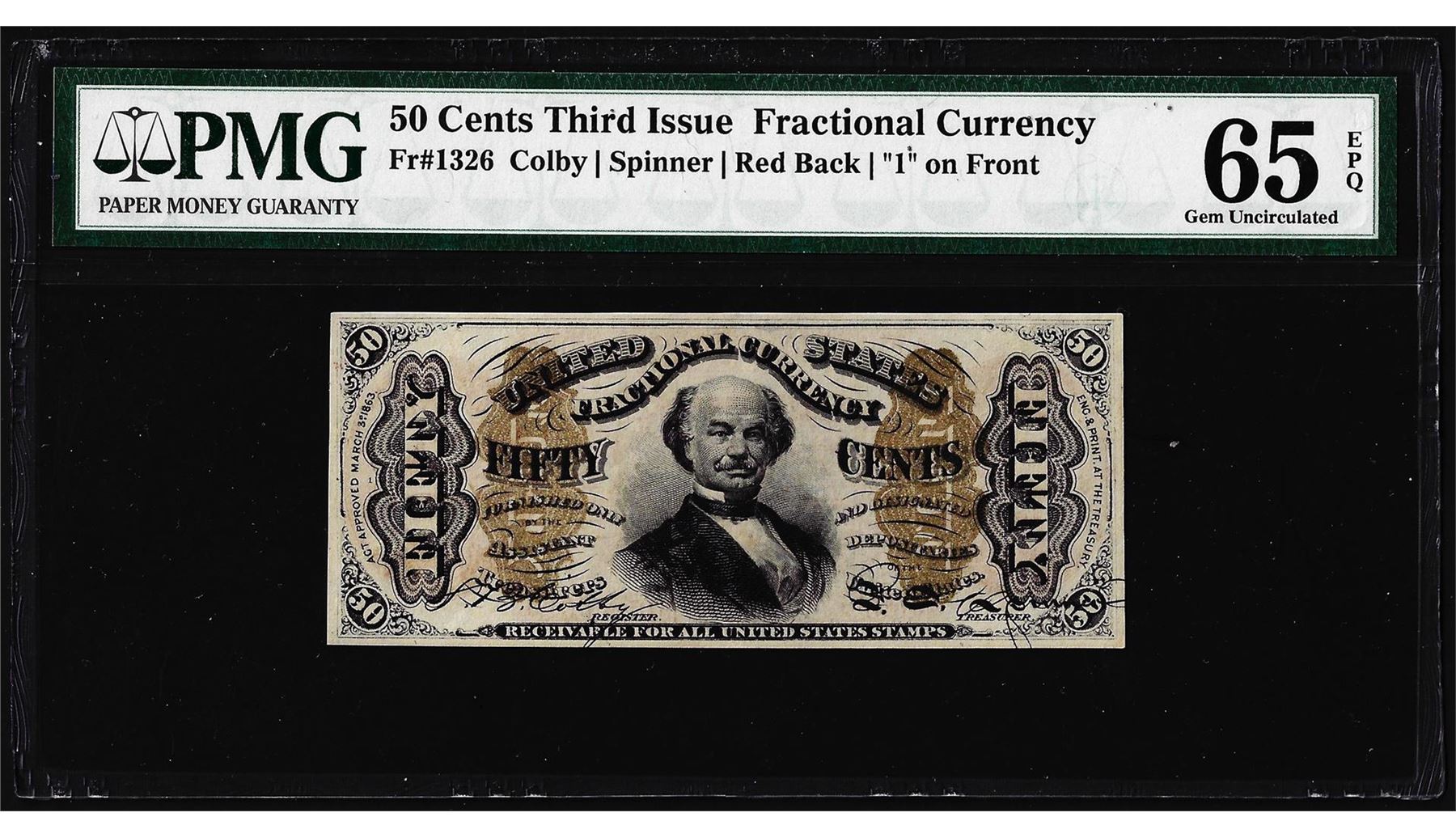 One 1863 Fifty Cents Third Issue Fractional Note Fr.1326 PMG Gem Uncirculated 65EPQ.