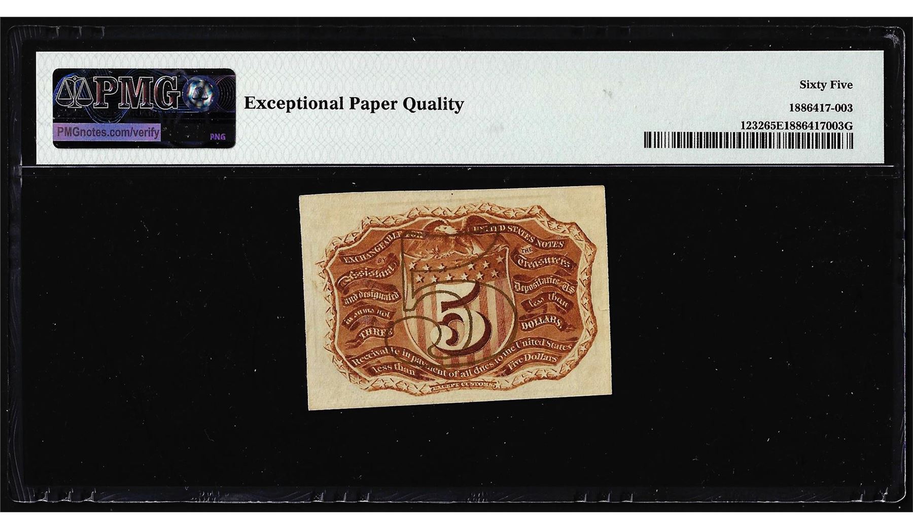 1863 Five Cents Second Issue Fractional Note Fr.1232 PMG Gem Uncirculated 65EPQ