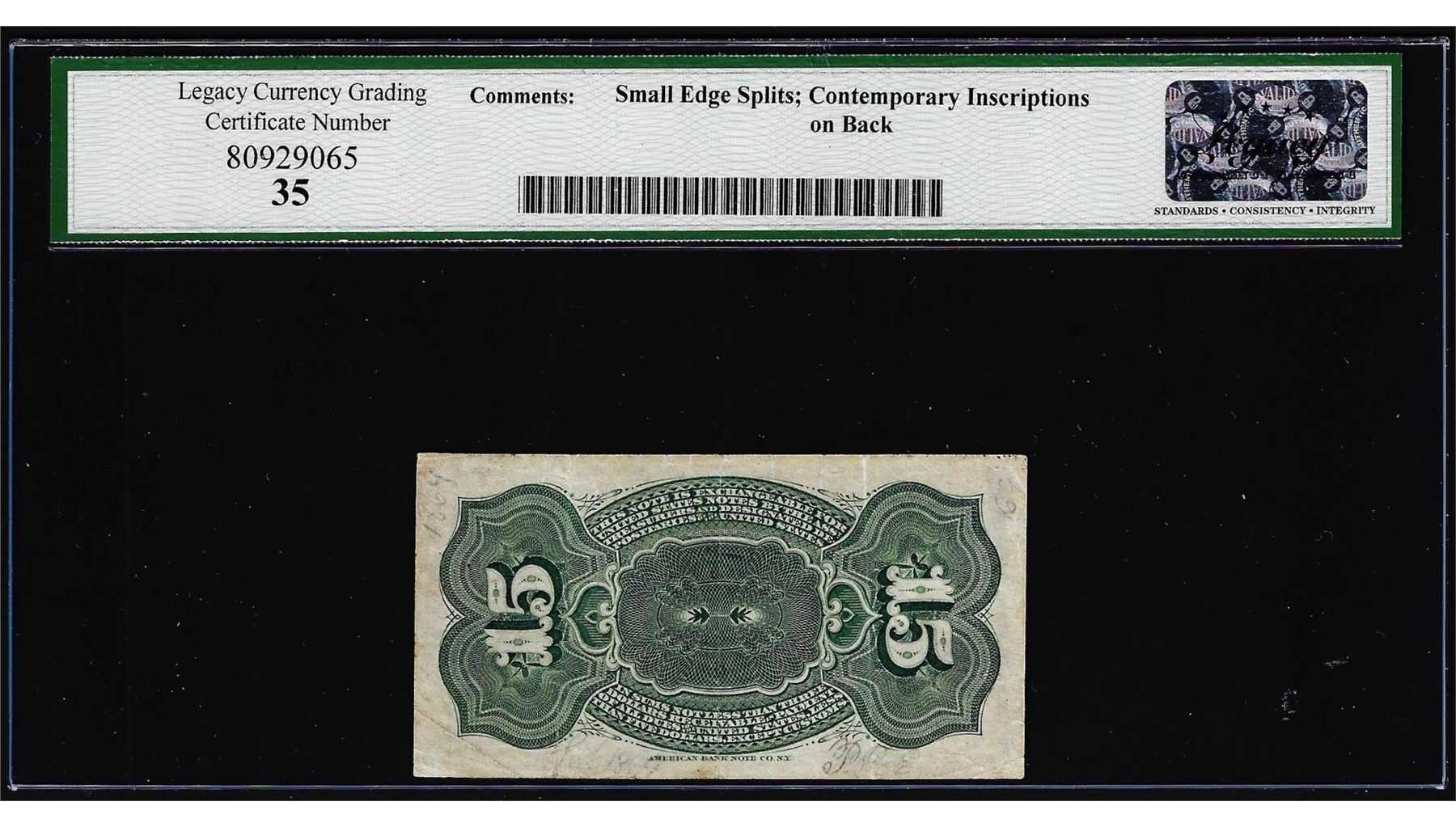 One 1863 Fourth Issue 15 Cents Fractional Currency Note Fr.1267 Legacy Very Fine 35. Legacy Graded.