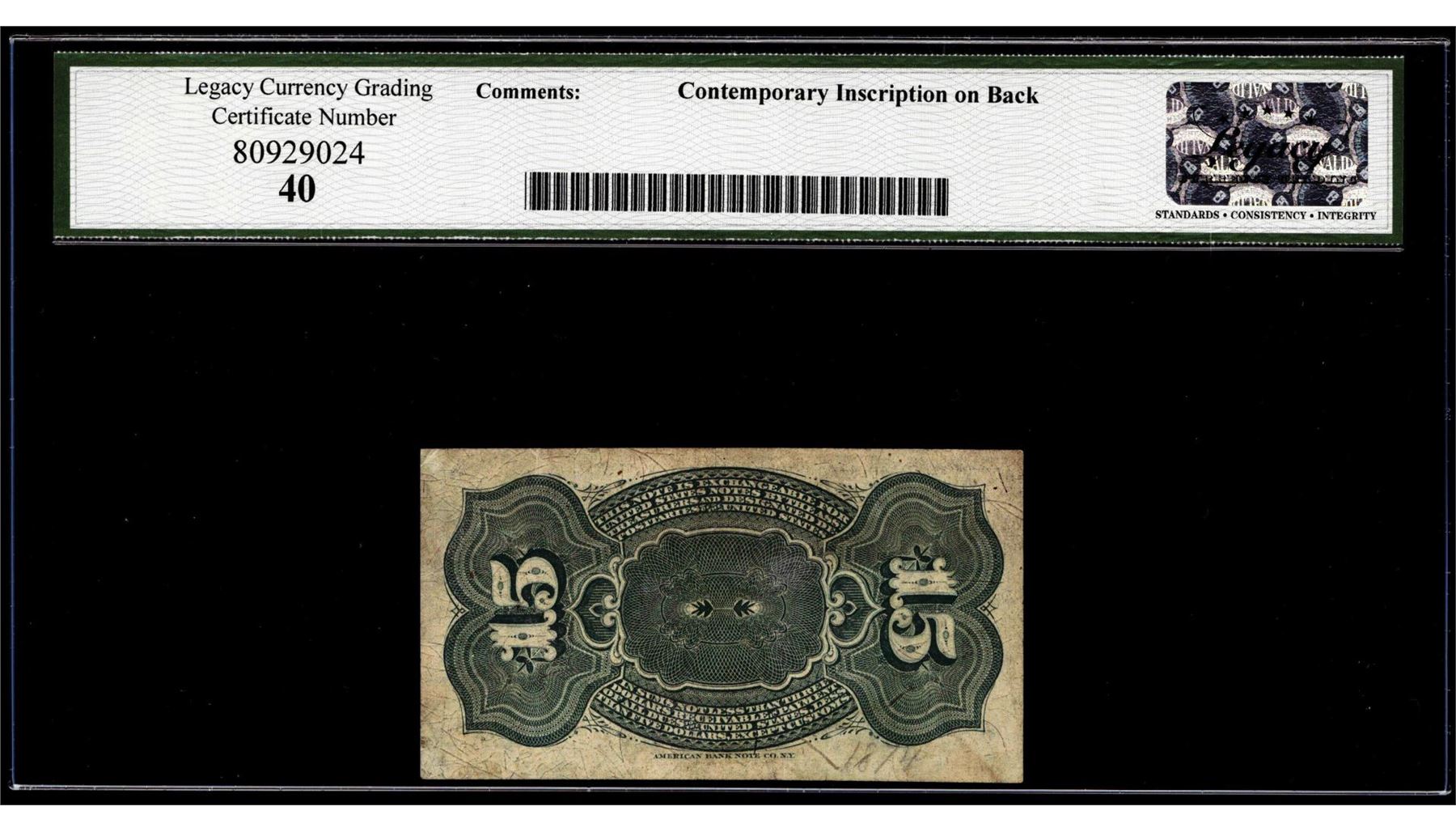 One 1863 Fourth Issue 15 Cents Fractional Currency Note Fr.1271 Legacy Extremely Fine 40. Legacy Graded.