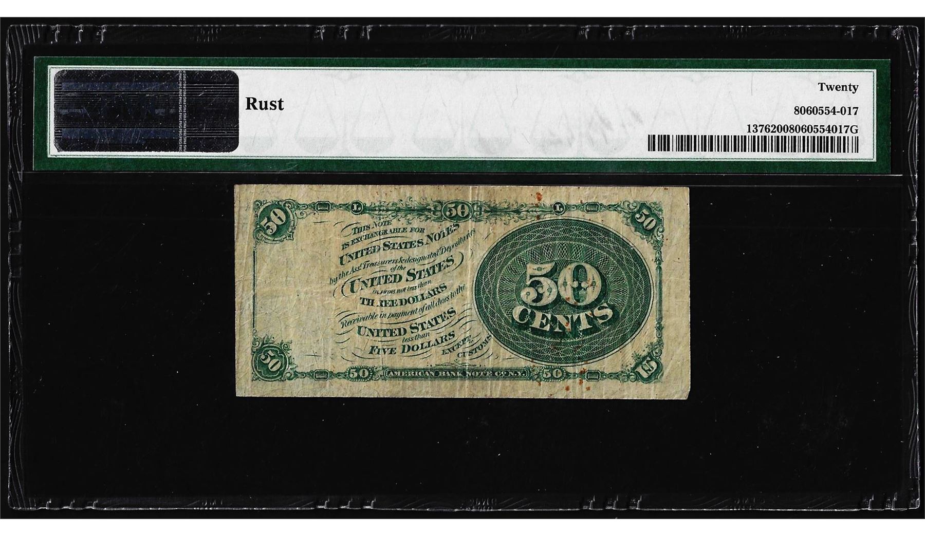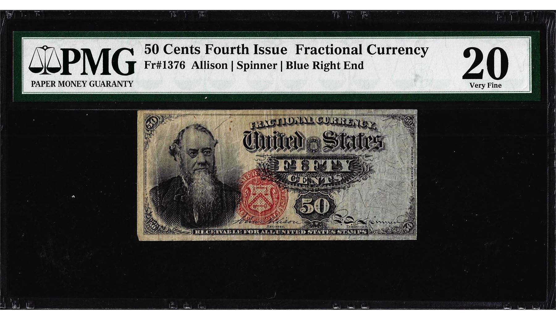 One 1863 Fourth Issue 50 Cents Stanton Fractional Currency Note Fr.1376 PMG Very Fine 20. PMG Certified.