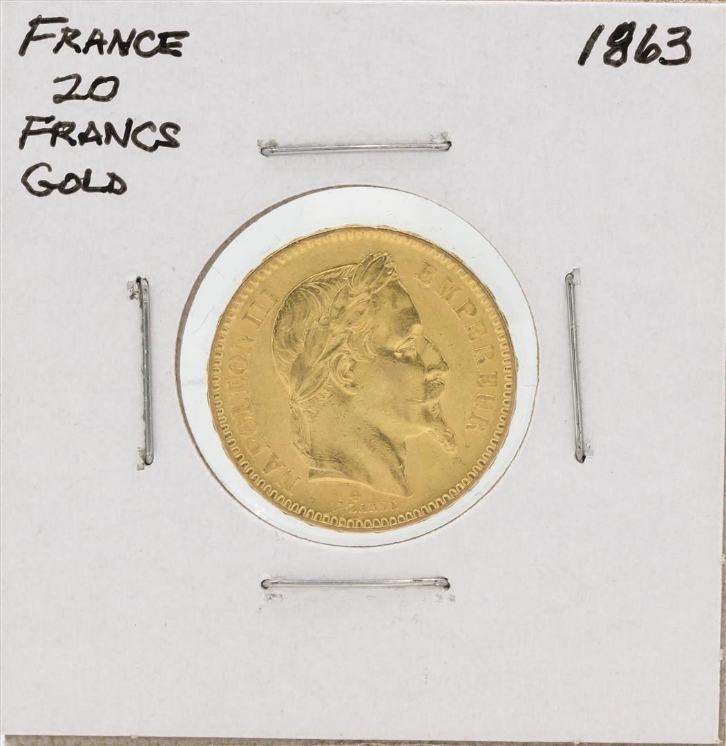One 1863 France 20 Francs Gold Coin.