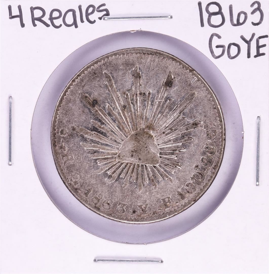 One 1863 GoYE Mexico 4 Reales Silver Coin.