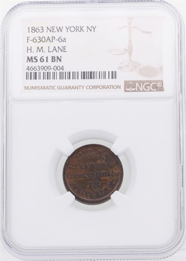 One 1863 H. M. Lane Civil War Token NGC MS61BN. NGC Certified.