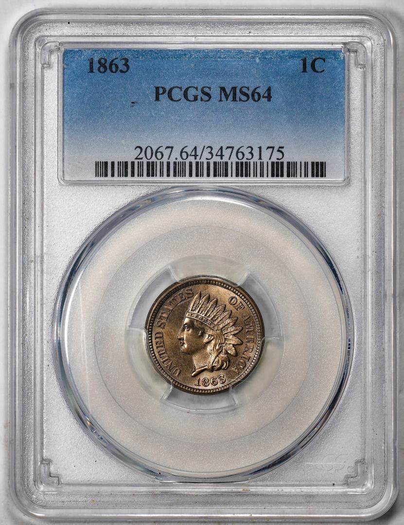 One 1863 Indian Cent Coin PCGS MS64. PCGS Graded.