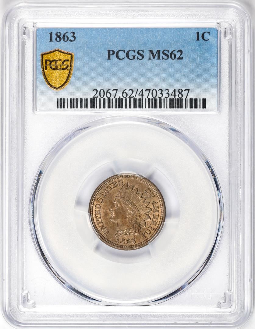 One 1863 Indian Head Cent Coin PCGS MS62. PCGS Graded.
