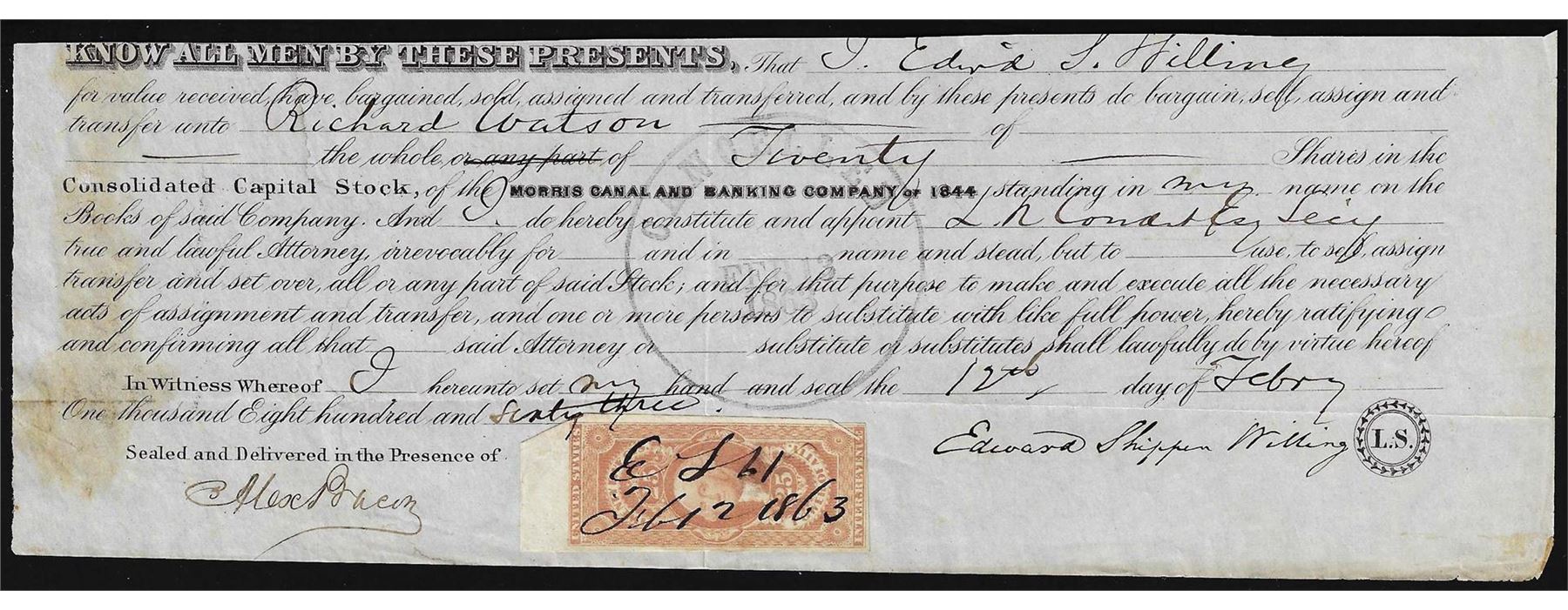 One 1863 Morris Canal & Banking Company Stock Certificate.