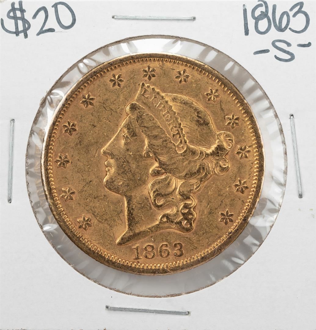 One 1863-S $20 Liberty Head Double Eagle Gold Coin Civil War Date.