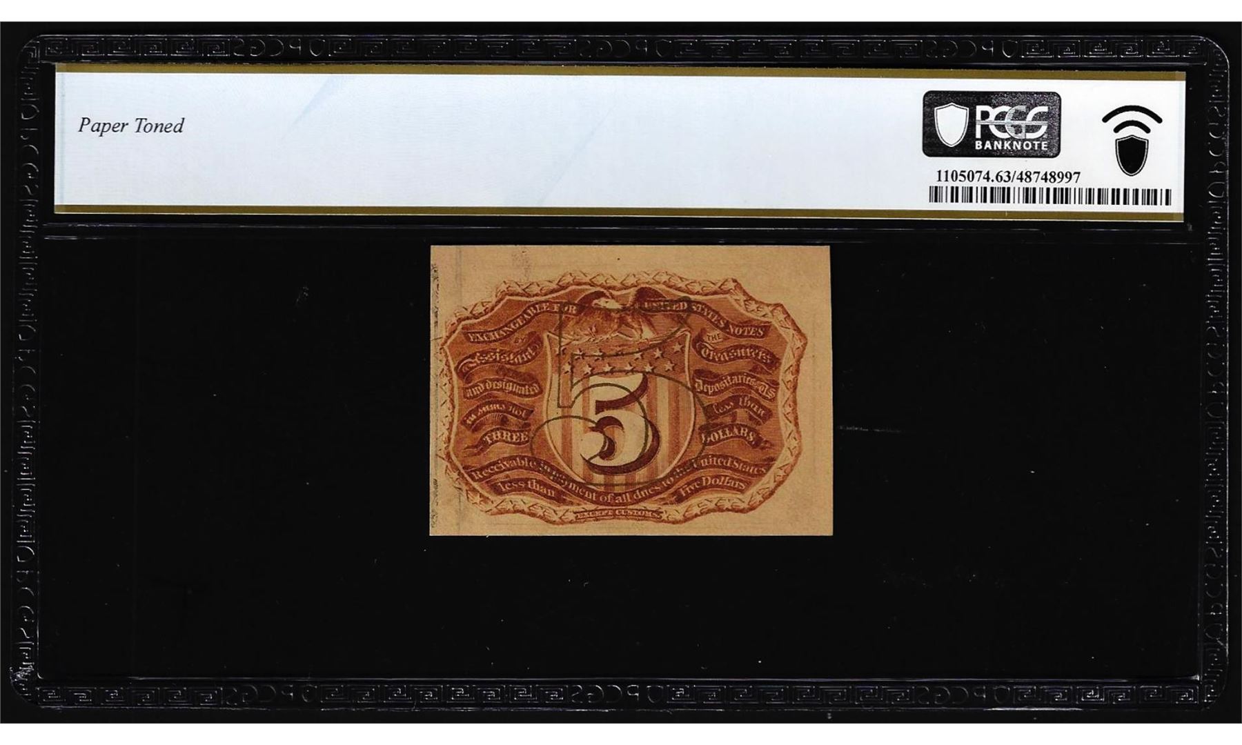 One 1863 Second Issue Five Cents Fractional Currency Note Fr.1232 PCGS Choice Unc 63. PCGS Graded.