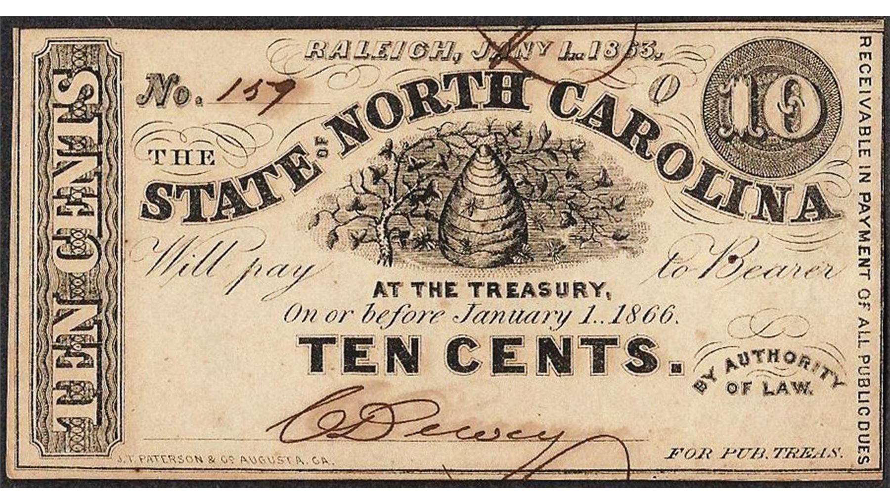 One 1863 State of North Carolina Ten Cents Obsolete Note.
