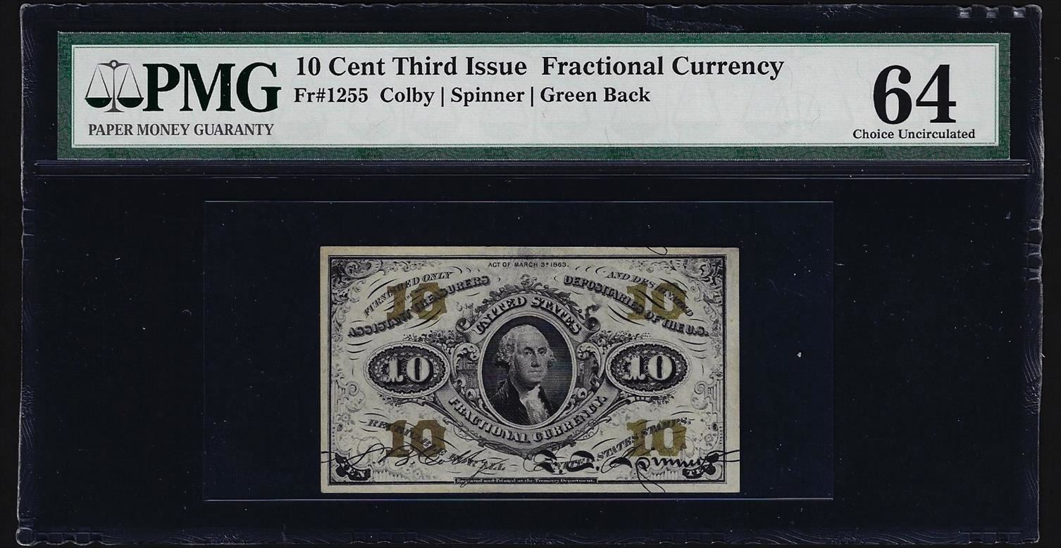 1863 Ten Cent Third Issue Fractional Currency Note PMG Choice Uncirculated 64