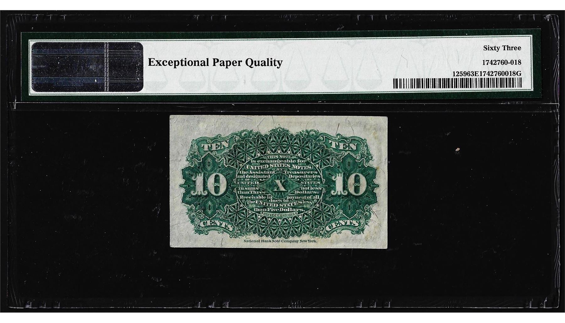 1863 Ten Cents Fourth Issue Fractional Note Fr.1259 PMG Choice Uncirculated 63EPQ