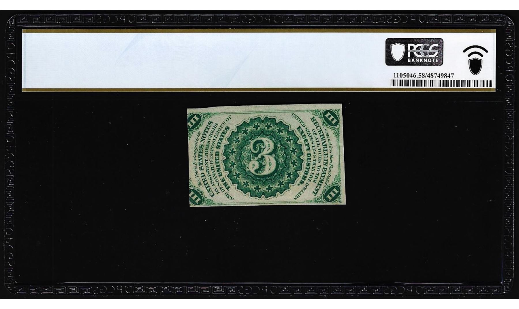1863 Third Issue Three Cents Fractional Currency Note Fr.1226 PCGS Choice AU 58