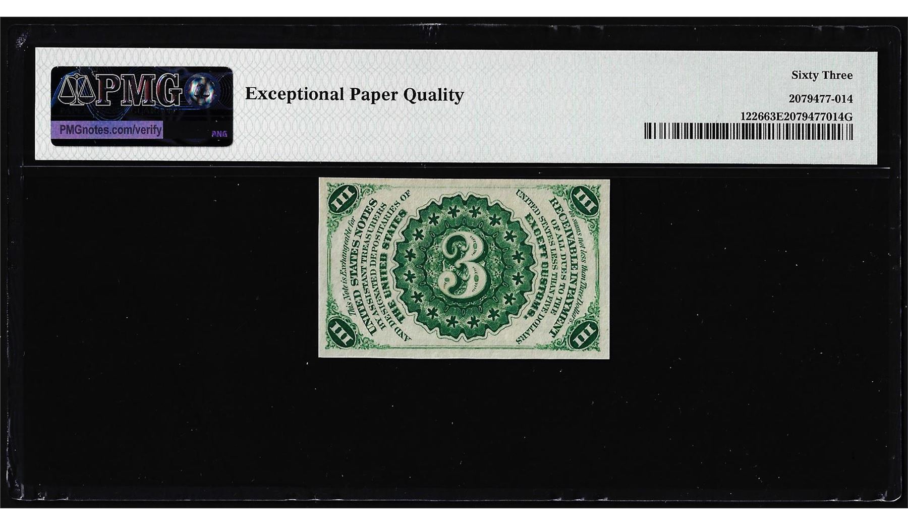 1863 Third Issue Three Cents Fractional Note Fr.1226 PMG Choice Uncirculated 63EPQ