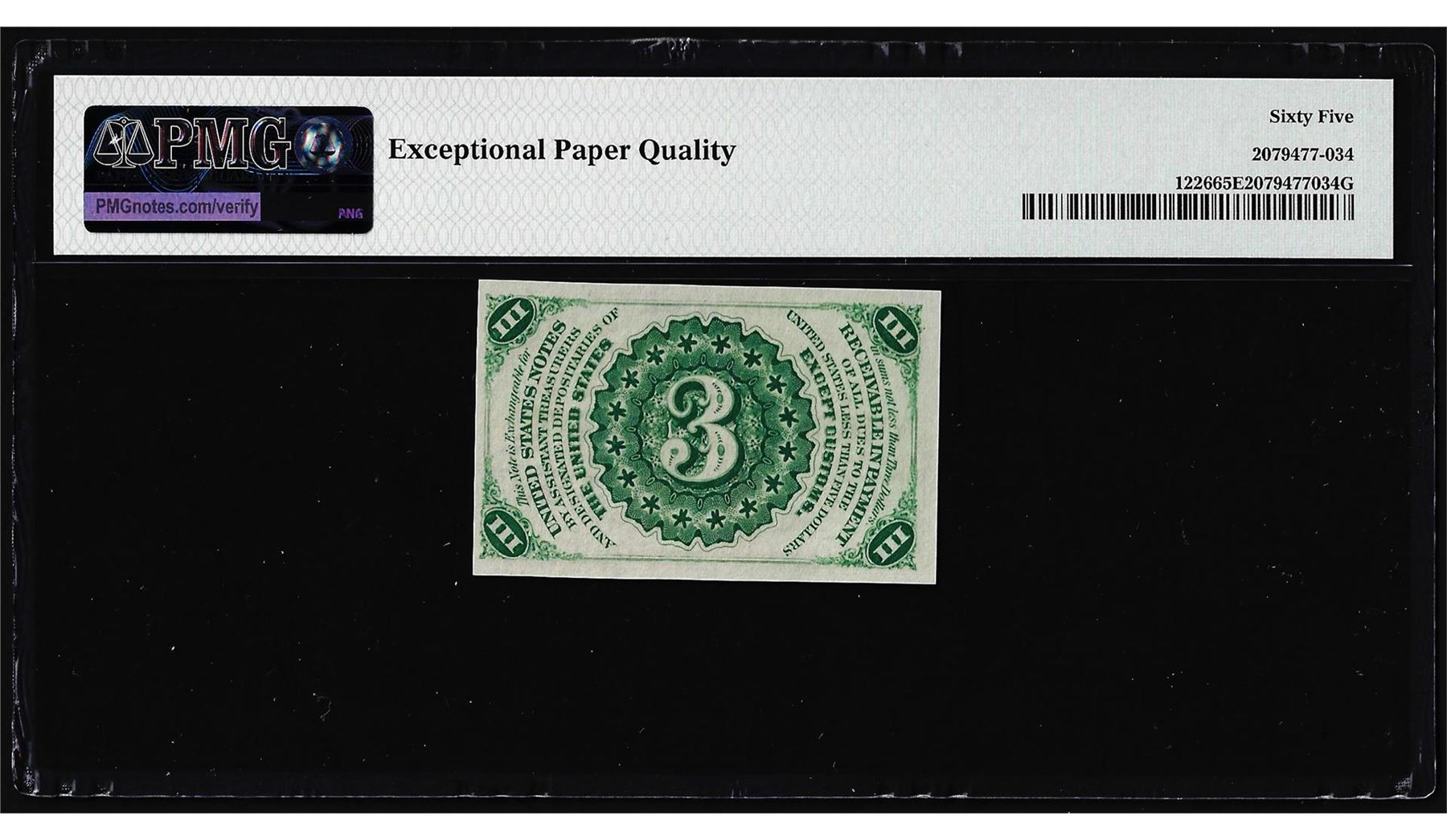 One 1863 Third Issue Three Cents Fractional Note Fr.1226 PMG Gem Uncirculated 65EPQ. PMG Certified.