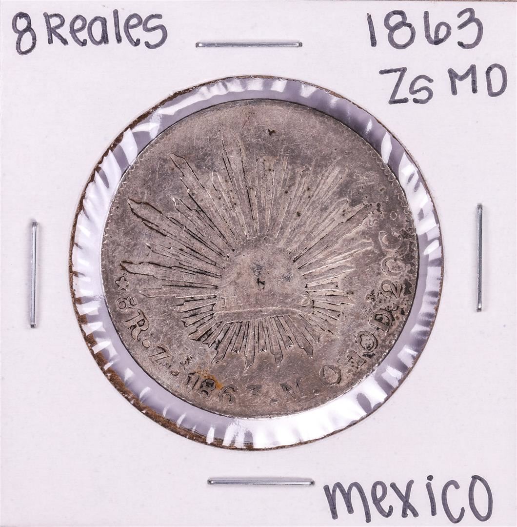 One 1863 Zs MO Mexico 8 Reales Silver Coin.