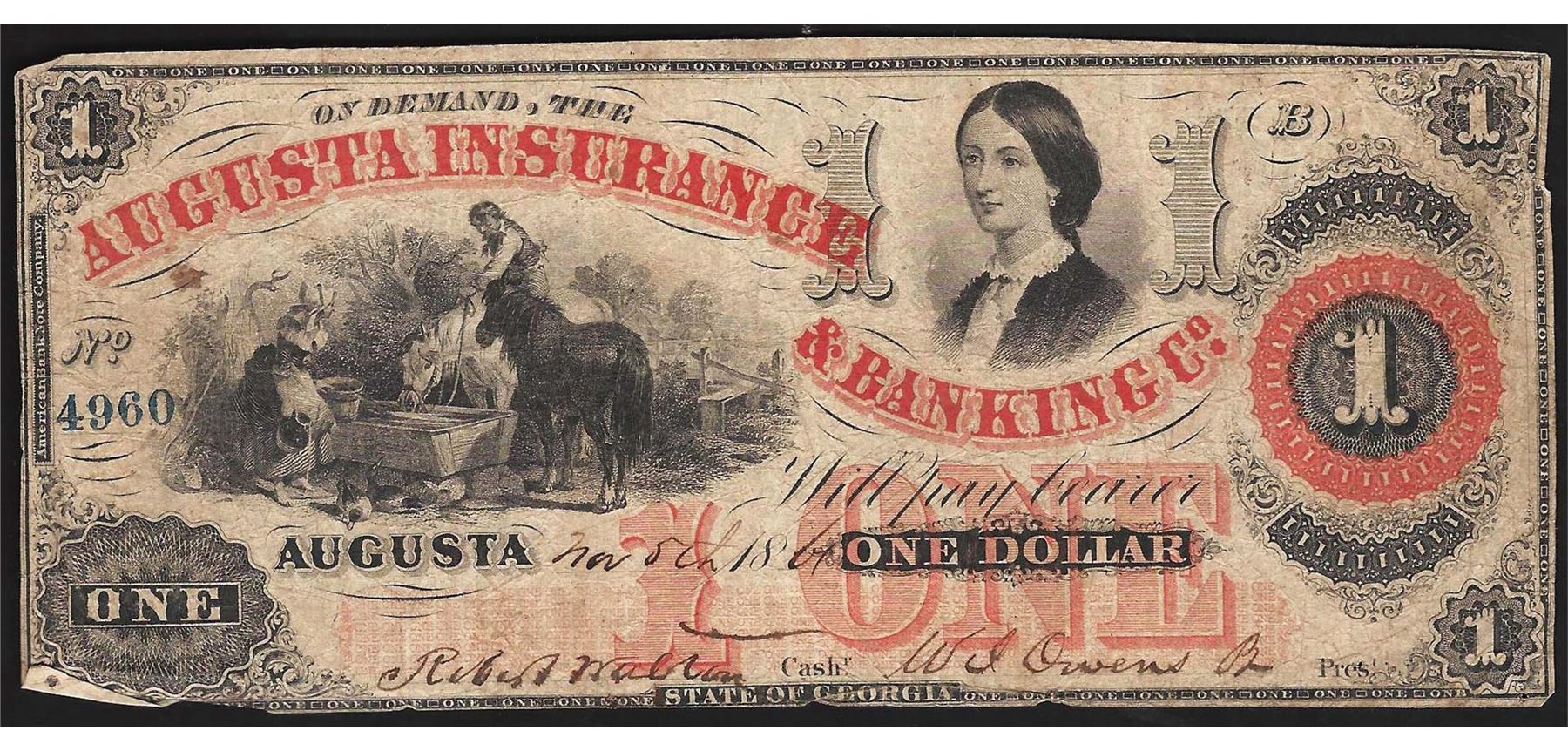 One 1864 $1 Augusta Insurance & Banking Co. Obsolete Note.