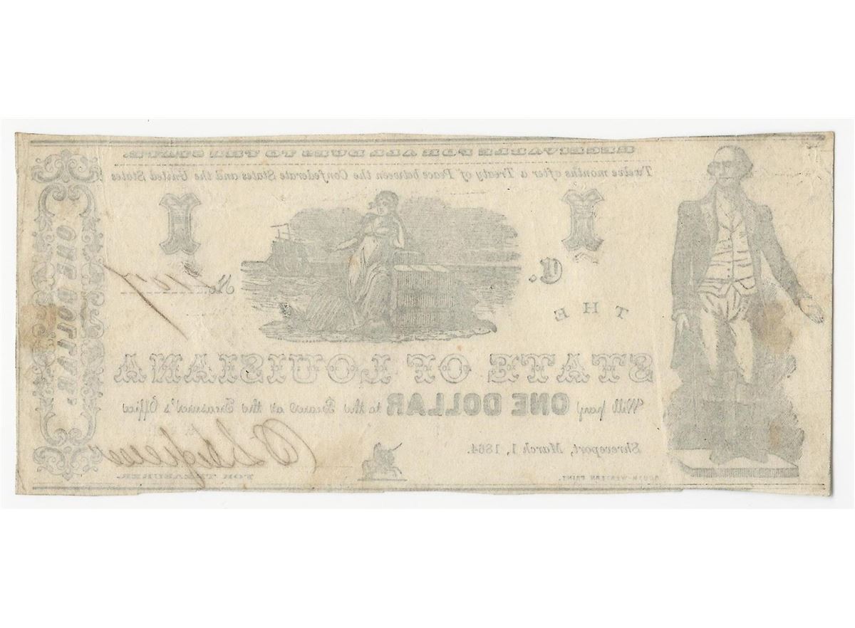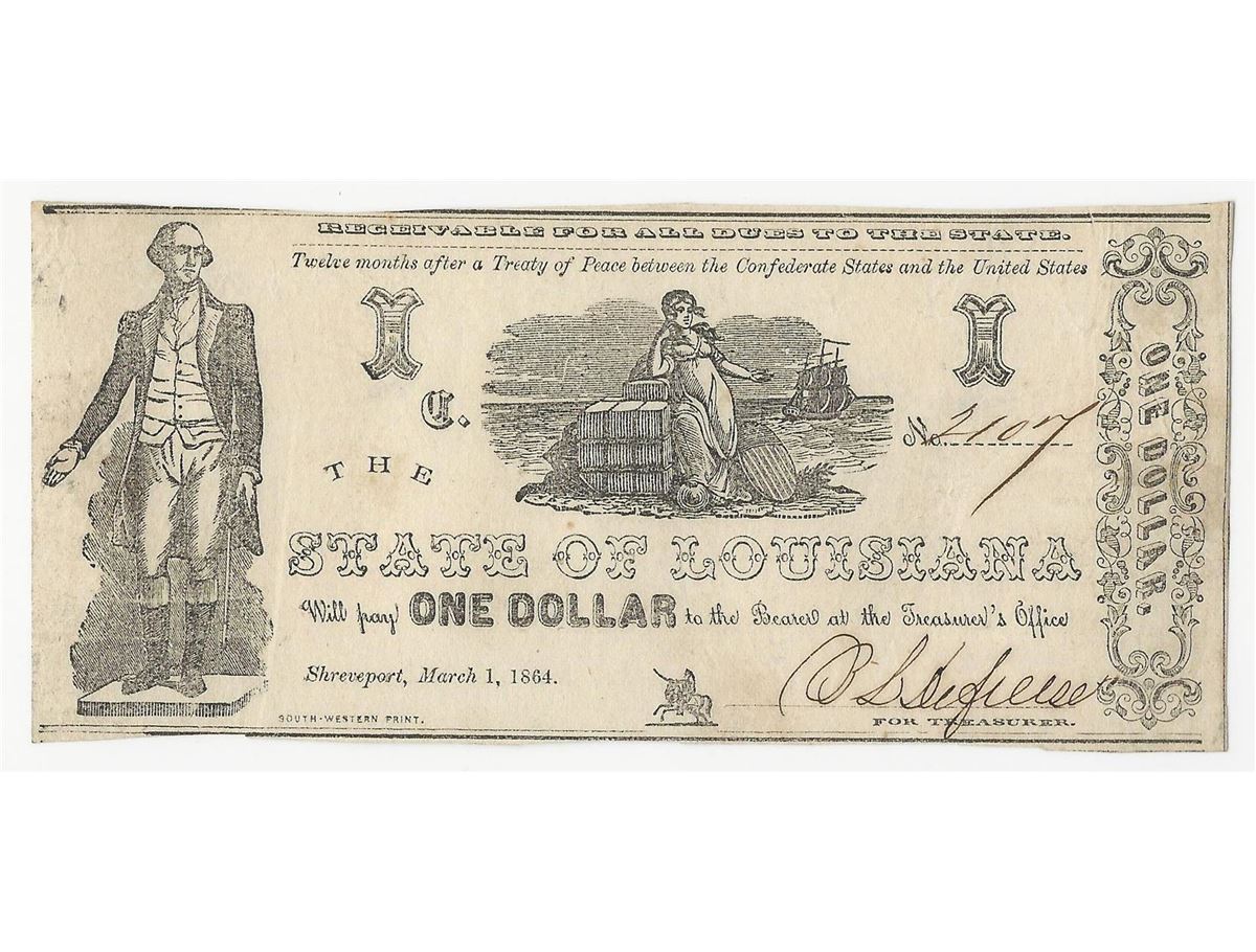 One 1864 $1 The State of Louisiana Obsolete Bank Note.