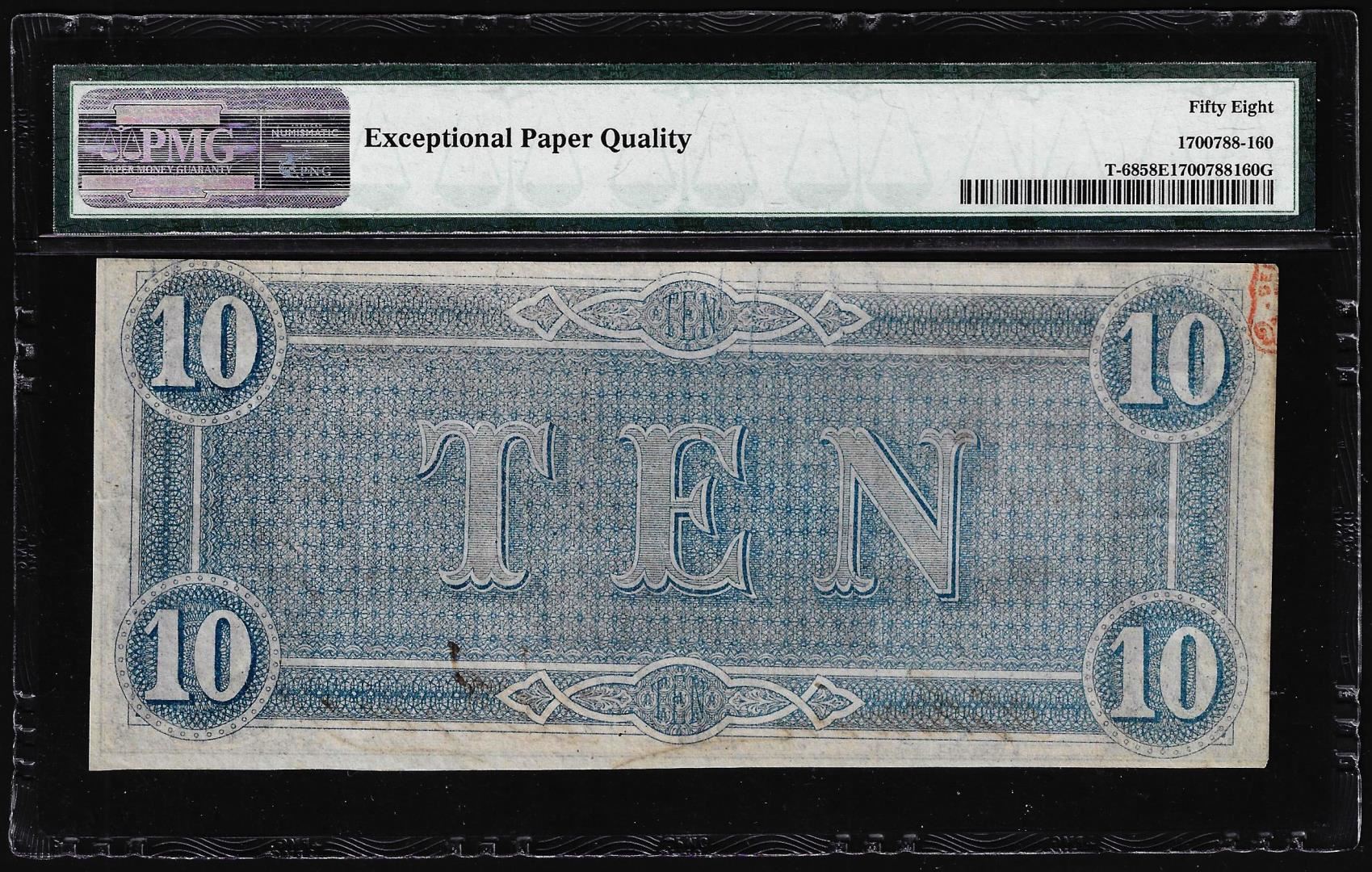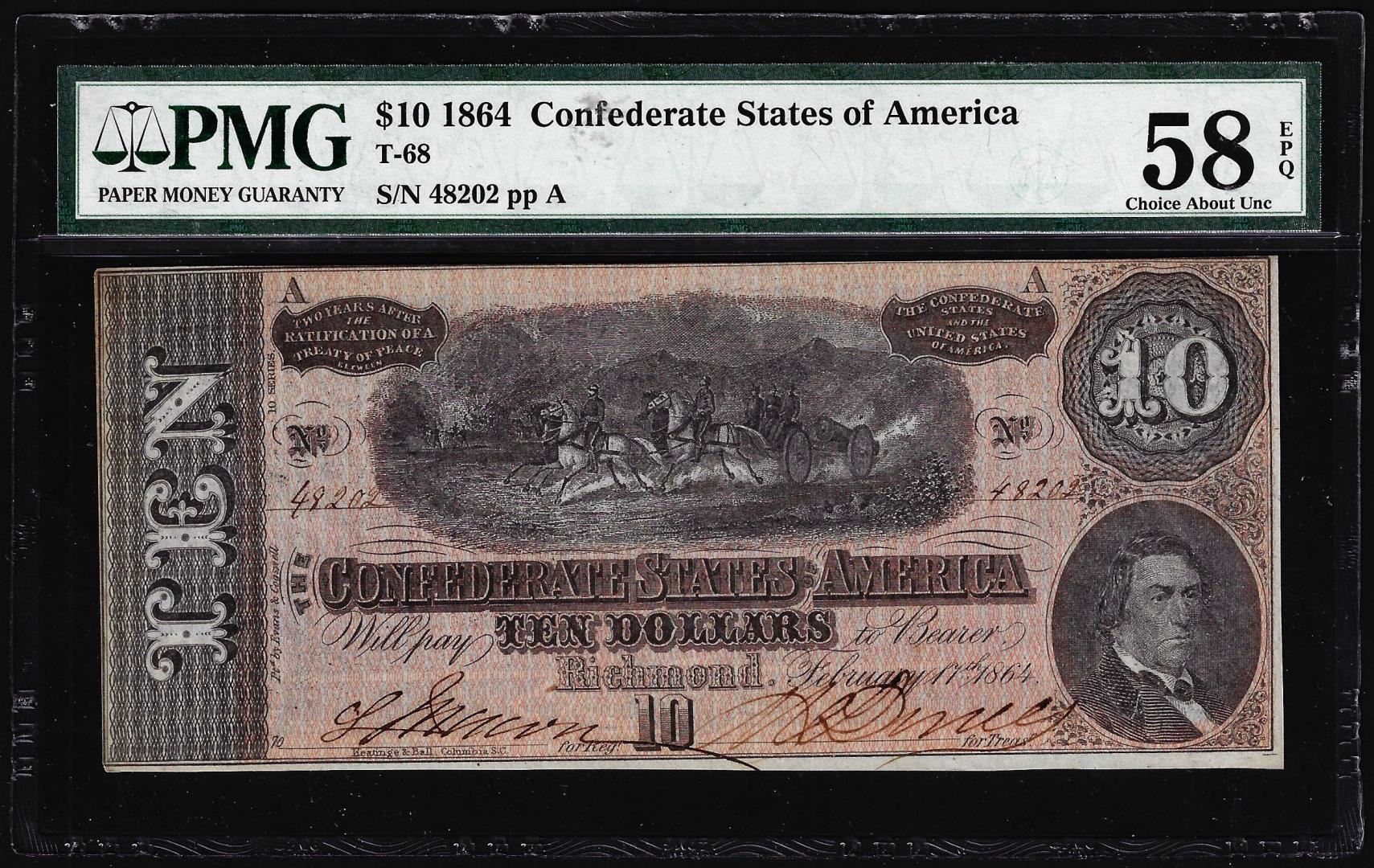 1864 $10 Confederate States of America Note T-68 PMG Choice About Unci 58PPQ